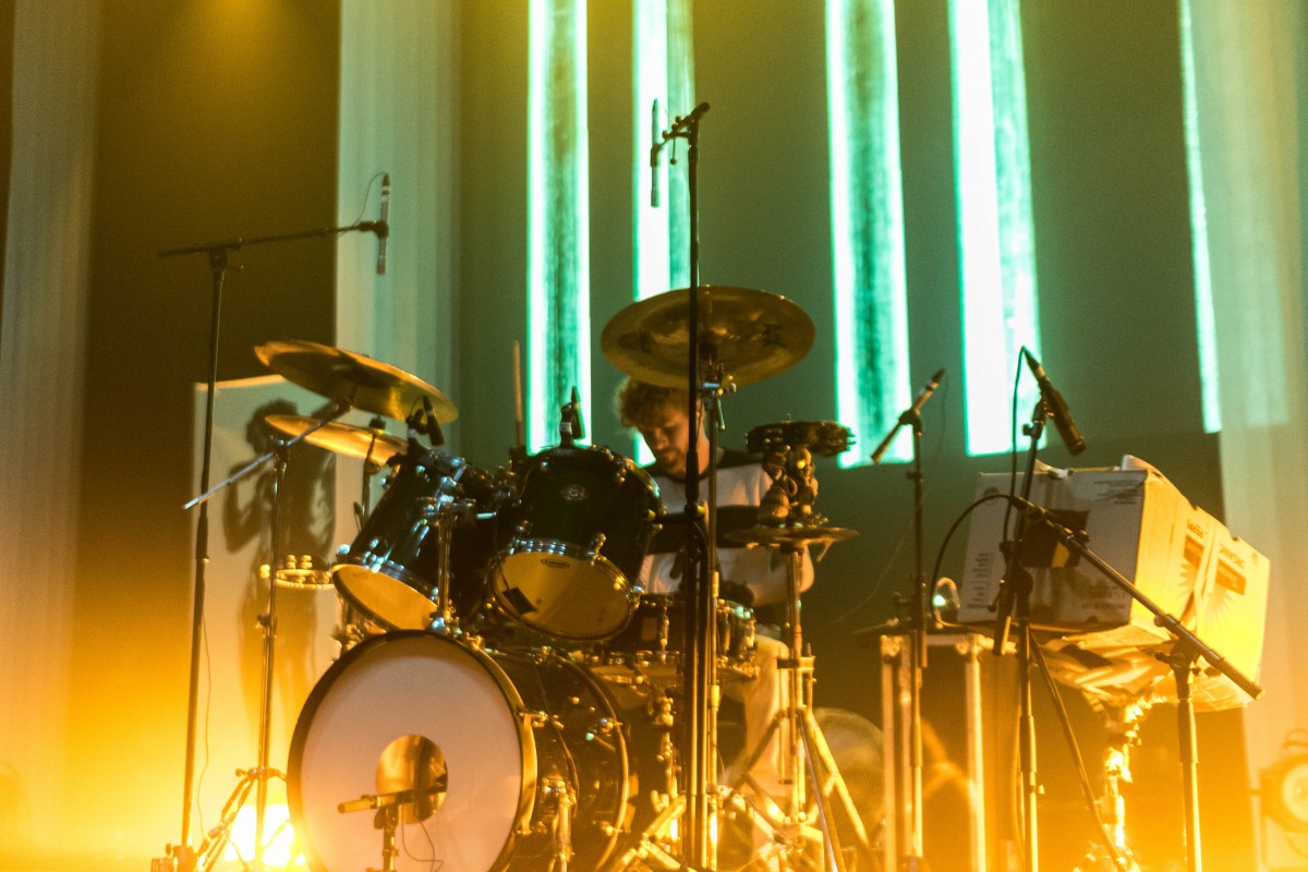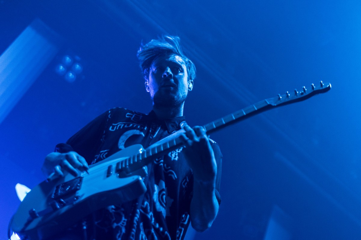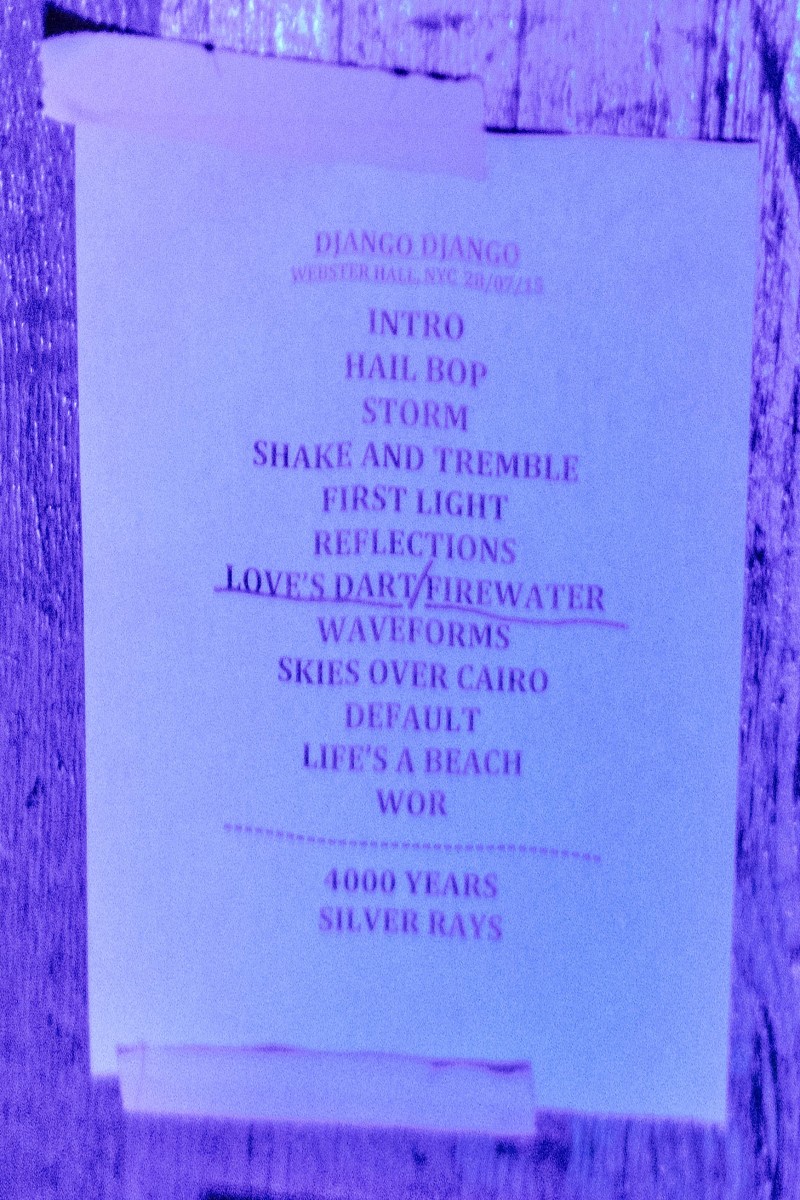 The band’s still four, plus occasional sax, for the upped-ante live show. It now features visuals, a strong use of lights (making photography quite challenging,) and a booming bass, though that may just be Webster Hall’s sound system. With Django Django’s wild surf sounds, dancing on the venue’s trademark bendy floors cause “Waveforms” to become a literal thing. I’m always afraid they’re gonna give under me when I’m cutting a rug there though.