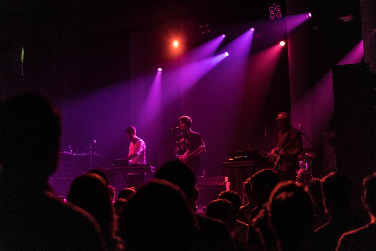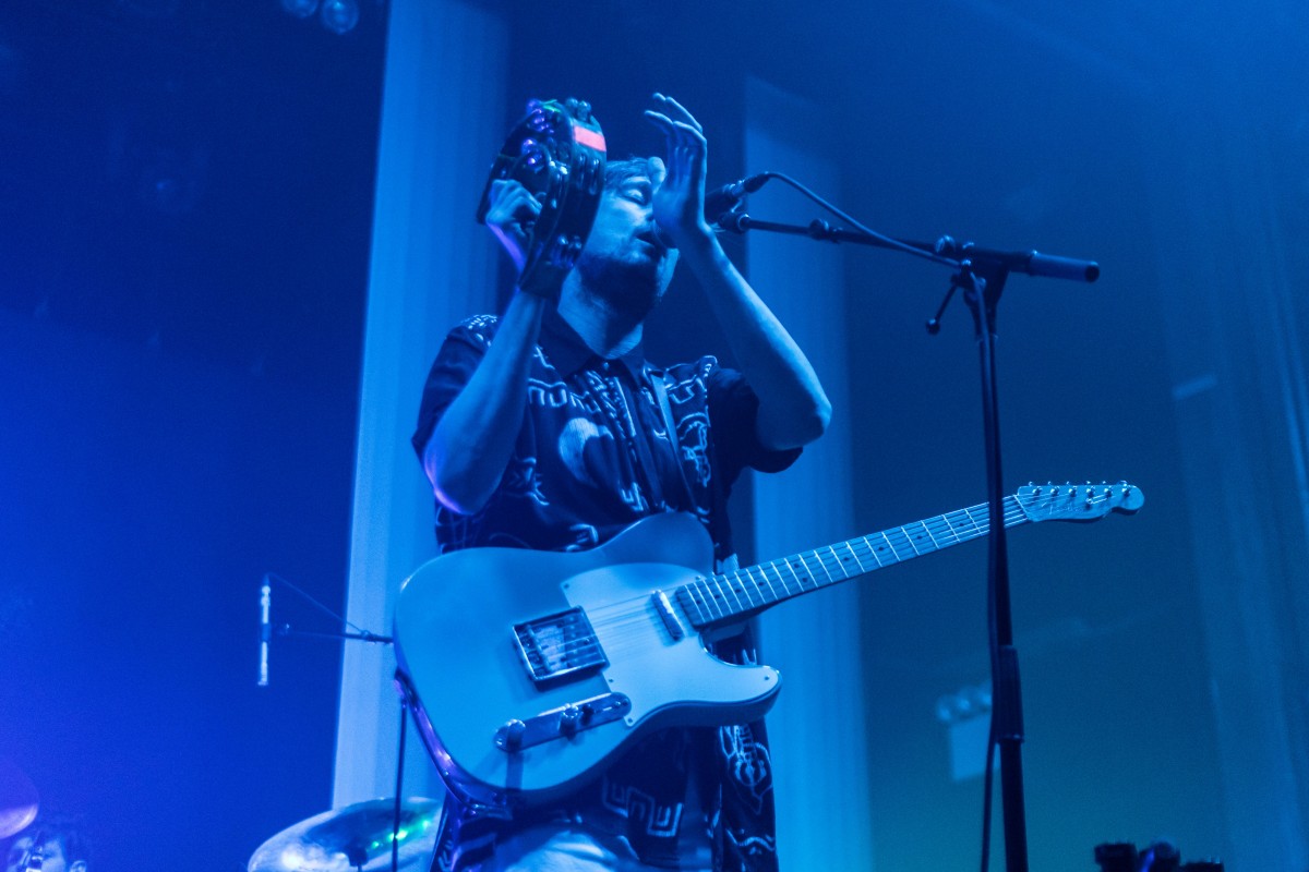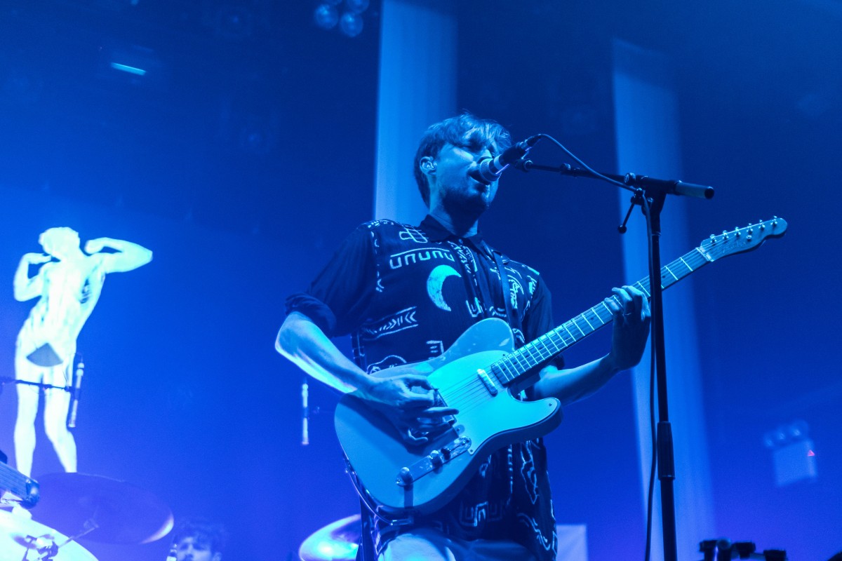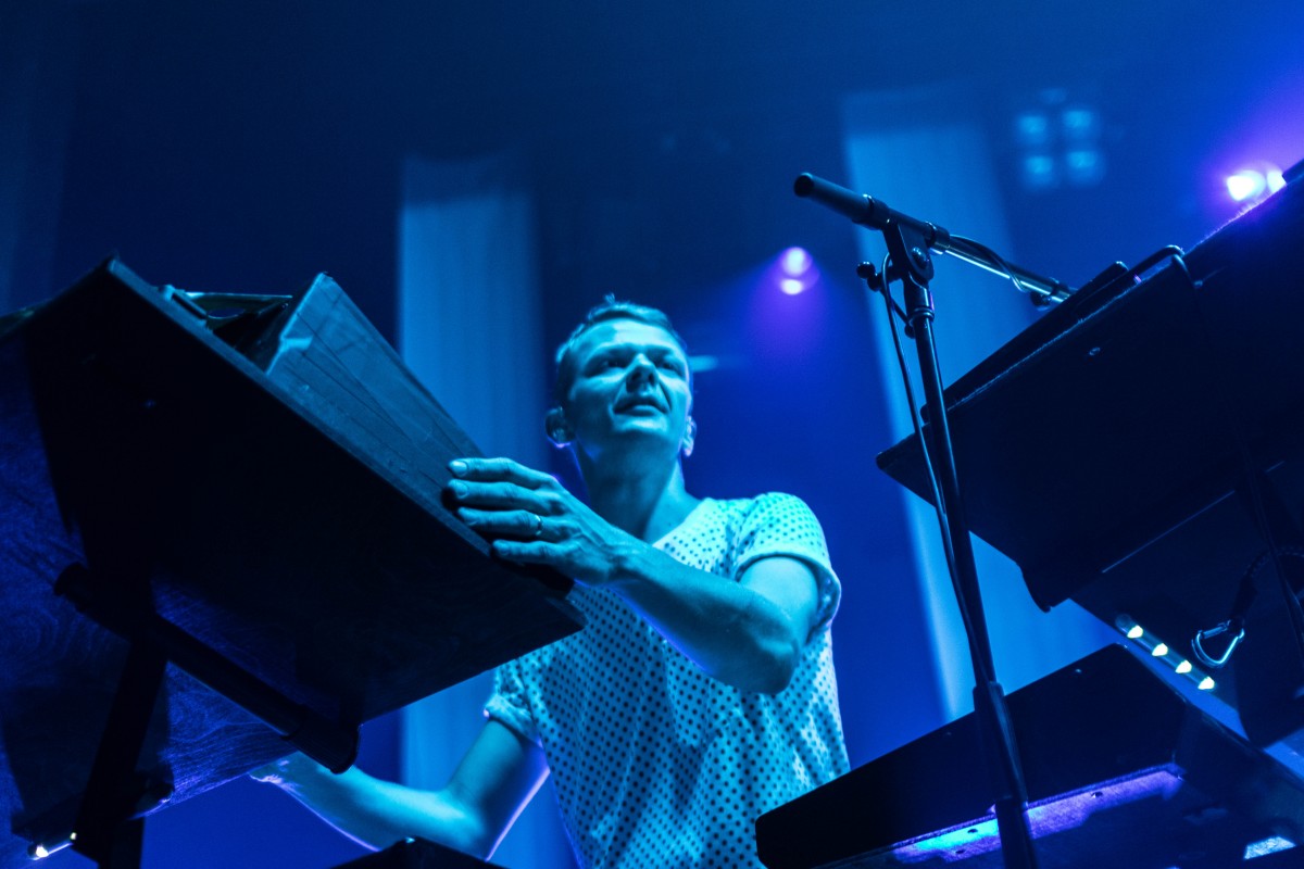 The band’s still four, plus occasional sax, for the upped-ante live show. It now features visuals, a strong use of lights (making photography quite challenging,) and a booming bass, though that may just be Webster Hall’s sound system. With Django Django’s wild surf sounds, dancing on the venue’s trademark bendy floors cause “Waveforms” to become a literal thing. I’m always afraid they’re gonna give under me when I’m cutting a rug there though.